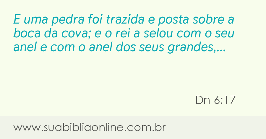 E uma pedra foi trazida e posta sobre a boca da cova; e o rei a selou com o seu anel e com o anel dos seus grandes, para que no tocante a Daniel nada se mudasse: