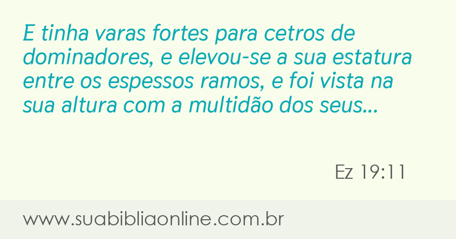E tinha varas fortes para cetros de dominadores, e elevou-se a sua estatura entre os espessos ramos, e foi vista na sua altura com a multidão dos seus ramos.