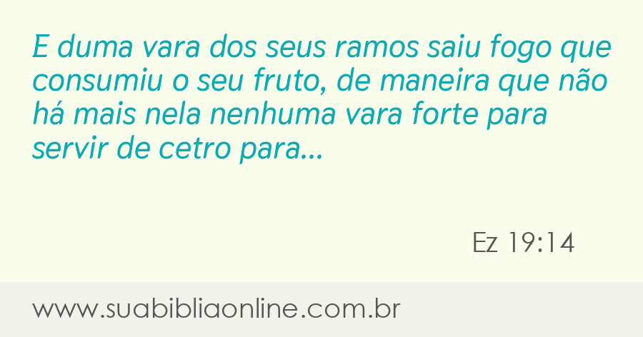 E de uma vara dos seus ramos saiu fogo que consumiu o seu fruto de maneira que nela não há mais vara forte, cetro para dominar. Esta é a lamentação, e servirá de lamentação.