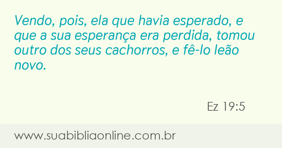 Vendo, pois, ela que havia esperado muito, e que a sua expectação era perdida, tomou outro dos seus filhotes, e fez dele um leãozinho.