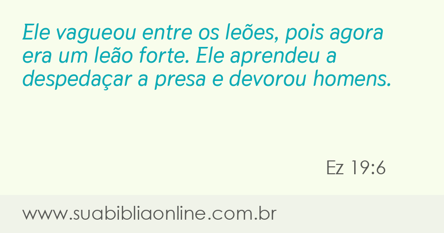 Este, pois, andando continuamente no meio dos leões, veio a ser leãozinho, e aprendeu a apanhar a presa, e devorou homens.
