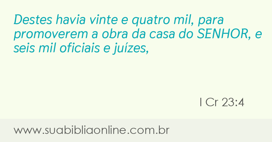 Destes havia vinte e quatro mil, para promoverem a obra da casa do SENHOR, e seis mil oficiais e juízes,