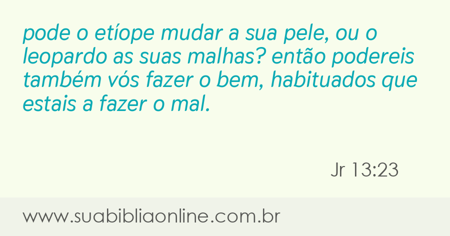 Porventura pode o etíope mudar a sua pele, ou o leopardo as suas manchas? Então podereis vós fazer o bem, sendo ensinados a fazer o mal.