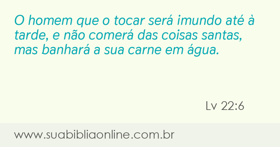 O homem que o tocar será imundo até à tarde, e não comerá das coisas santas, mas banhará a sua carne em água.