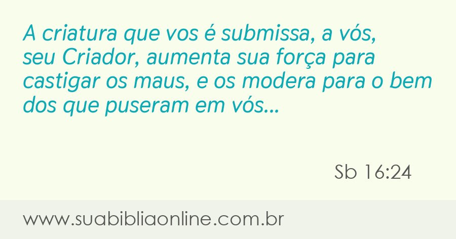 A criatura que vos é submissa, a vós, seu Criador, aumenta sua força para castigar os maus, e os modera para o bem dos que puseram em vós sua fé.