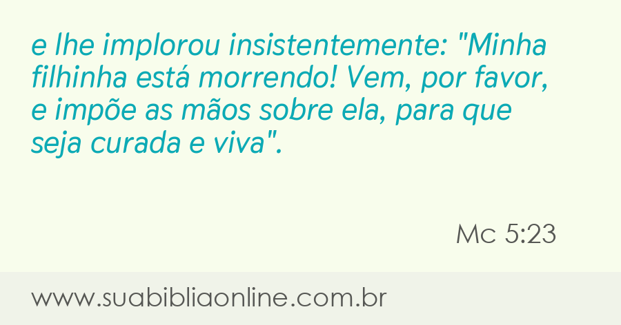 E rogava-lhe muito, dizendo: Minha filha está moribunda