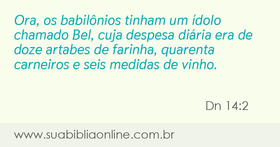 Ora, os babilônios tinham um ídolo chamado Bel, cuja despesa diária era de doze artabes de farinha, quarenta carneiros e seis medidas de vinho.