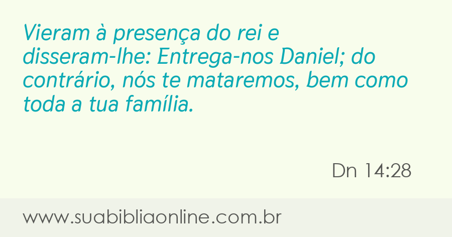 Vieram à presença do rei e disseram-lhe: Entrega-nos Daniel; do contrário, nós te mataremos, bem como toda a tua família.