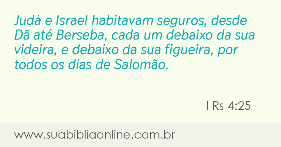 Judá e Israel habitavam seguros, desde Dã até Berseba, cada um debaixo da sua videira, e debaixo da sua figueira, por todos os dias de Salomão.