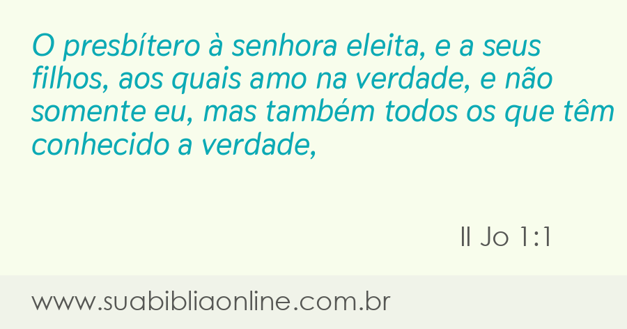 O ancião à senhora eleita, e a seus filhos, aos quais eu amo em verdade, e não somente eu, mas também todos os que conhecem a verdade,