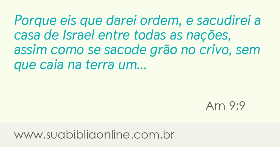 Pois eis que darei ordens, e sacudirei a casa de Israel em todas as nações, assim como se sacode grão no crivo; todavia não cairá sobre a terra um só grão.