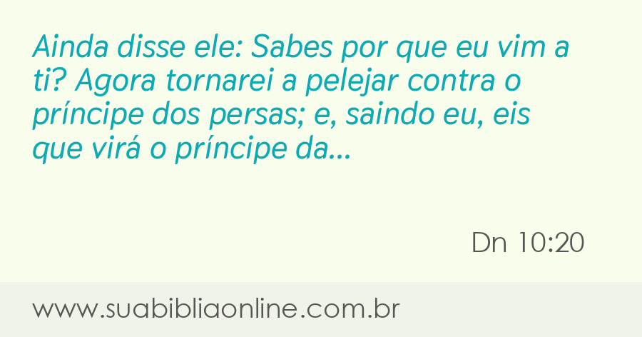 Ainda disse ele: Sabes por que eu vim a ti? Agora tornarei a pelejar contra o príncipe dos persas; e, saindo eu, eis que virá o príncipe da Grécia.