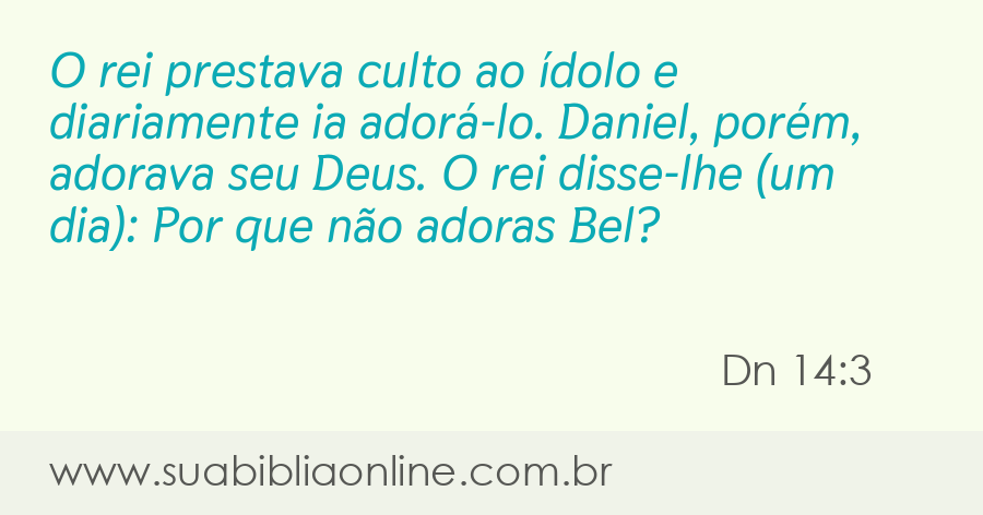 O rei prestava culto ao ídolo e diariamente ia adorá-lo. Daniel, porém, adorava seu Deus. O rei disse-lhe (um dia): Por que não adoras Bel?