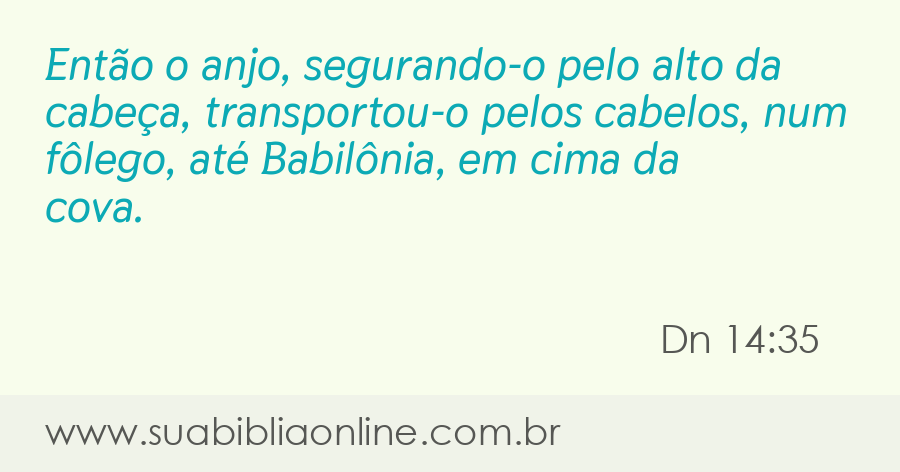 Então o anjo, segurando-o pelo alto da cabeça, transportou-o pelos cabelos, num fôlego, até Babilônia, em cima da cova.