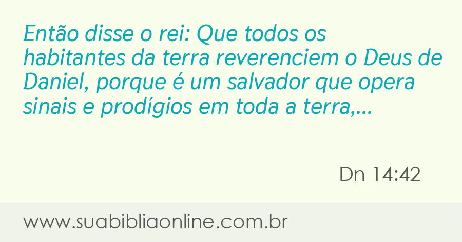 Então disse o rei: Que todos os habitantes da terra reverenciem o Deus de Daniel, porque é um salvador que opera sinais e prodígios em toda a terra, e salvou Daniel da cova dos leões.