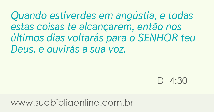 Quando estiveres em angústia, e todas estas coisas te alcançarem, então nos últimos dias voltarás para o Senhor teu Deus, e ouvirás a sua voz;