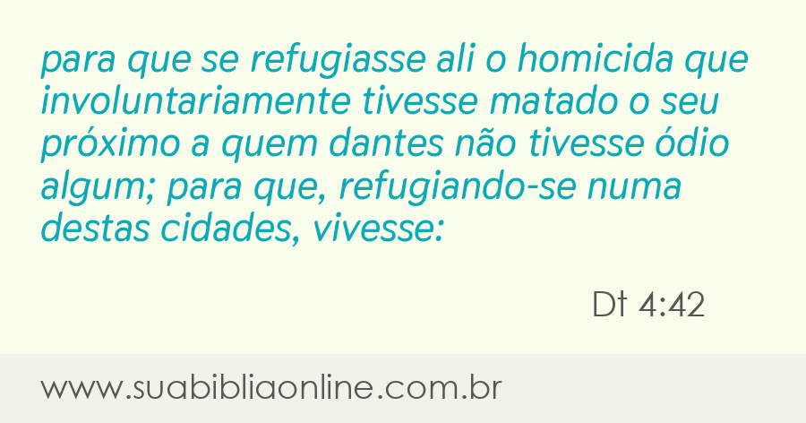 para que se refugiasse ali o homicida que involuntariamente tivesse matado o seu próximo a quem dantes não tivesse ódio algum; para que, refugiando-se numa destas cidades, vivesse: