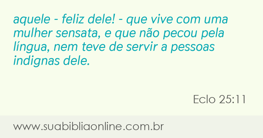Faça sua busca na Bíblia. Sua Bíblia Online.Versão completa da Bíblia em Português com todos os livros, capítulos e versículos bíblicos.aquele - feliz dele! - que vive com uma mulher sensata, e que não pecou pela língua, nem teve de servir a pessoas indignas dele.