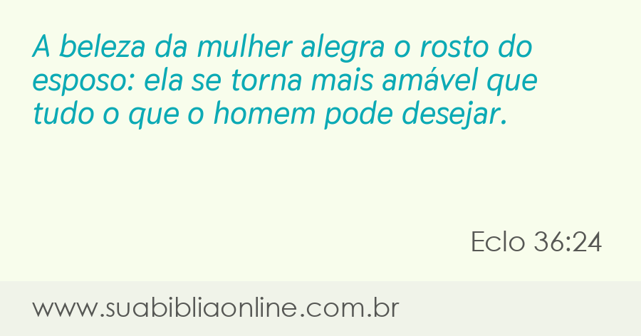 A beleza da mulher alegra o rosto do esposo: ela se torna mais amável que tudo o que o homem pode desejar.