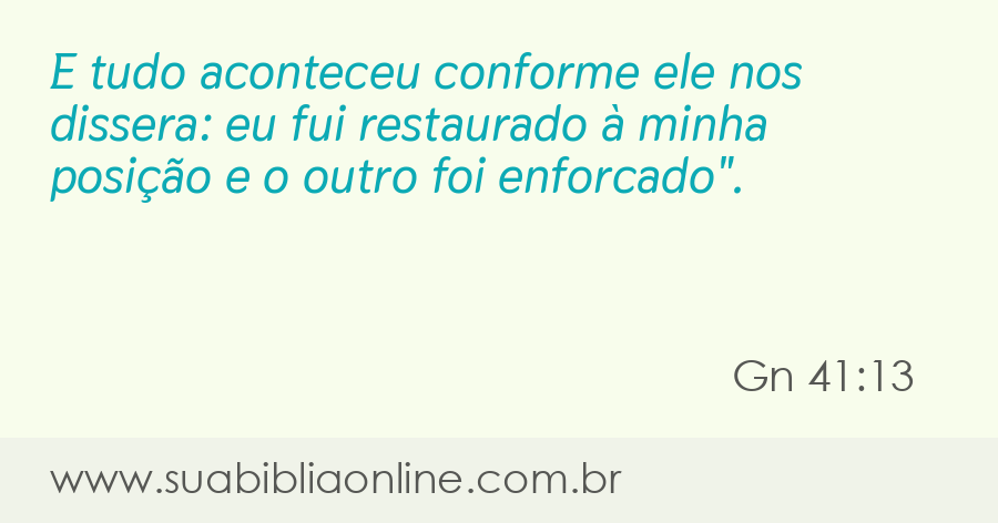 E como ele nos interpretou, assim mesmo foi feito: a mim me fez tornar ao meu estado, e a ele fez enforcar.