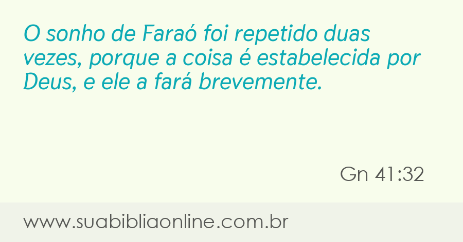 Ora, se o sonho foi duplicado a Faraó, é porque esta coisa é determinada por Deus, e ele brevemente a fará.