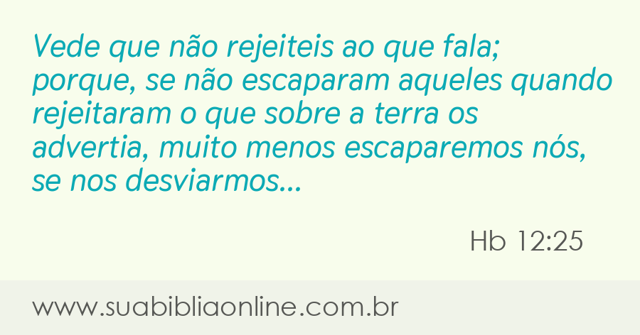 Vede que não rejeiteis ao que fala; porque, se não escaparam aqueles quando rejeitaram o que sobre a terra os advertia, muito menos escaparemos nós, se nos desviarmos daquele que nos adverte lá dos céus;
