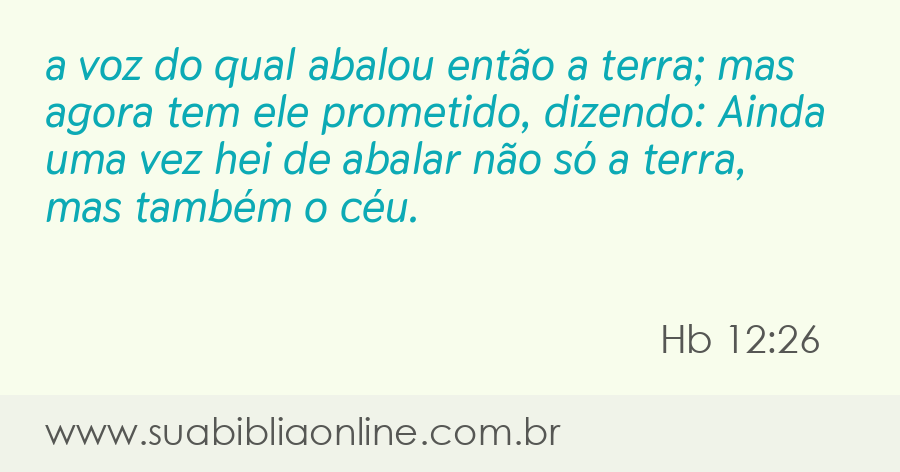 a voz do qual abalou então a terra; mas agora tem ele prometido, dizendo: Ainda uma vez hei de abalar não só a terra, mas também o céu.