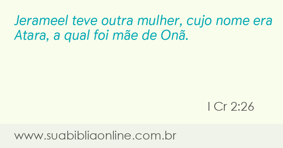 Jerameel teve outra mulher, cujo nome era Atara, a qual foi mãe de Onã.