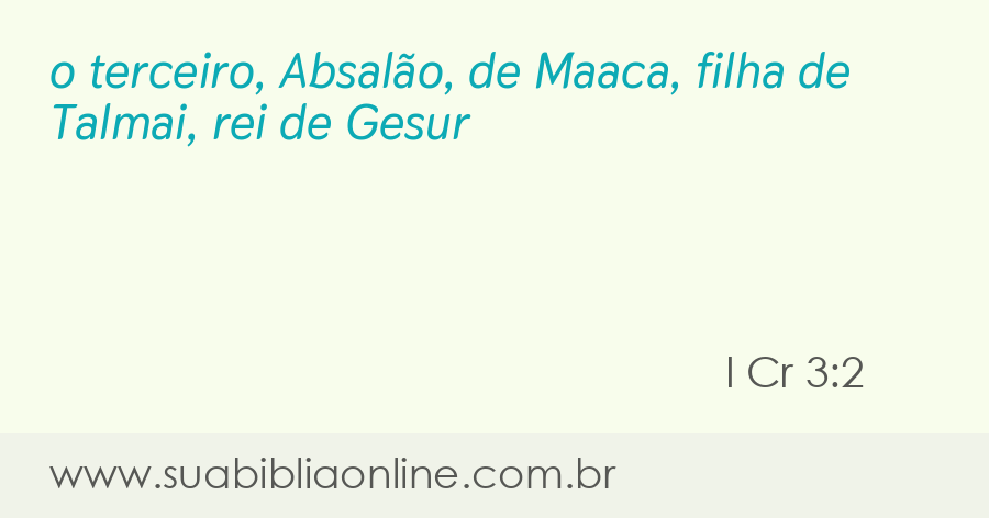 O terceiro Absalão, filho de Maacá, filha de Talmai, rei de Gesur; o quarto Adonias, filho de Hagite;