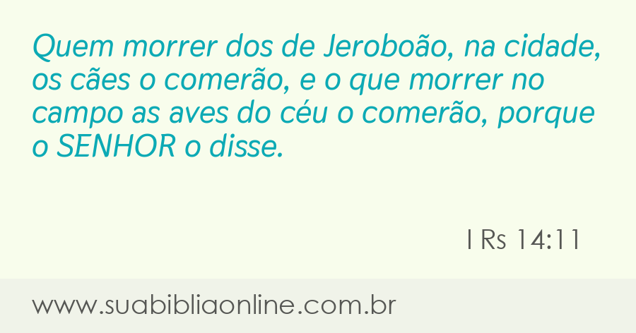 Quem morrer a Jeroboão na cidade, comê-lo-ão os cães; e o que lhe morrer no campo, comê-lo-ão as aves do céu; porque o Senhor o disse.