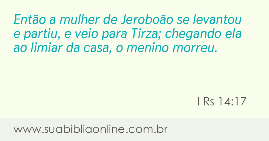Então a mulher de Jeroboão se levantou e partiu, e veio para Tirza; chegando ela ao limiar da casa, o menino morreu.
