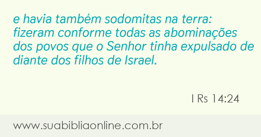 e havia também sodomitas na terra: fizeram conforme todas as abominações dos povos que o Senhor tinha expulsado de diante dos filhos de Israel.