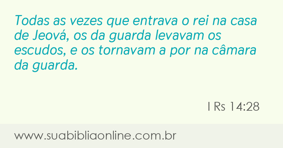 E todas as vezes que o rei entrava na casa do Senhor os da guarda levavam os escudos, e depois tornavam a pô-los na câmara da guarda.