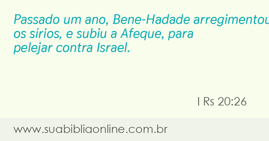 Passado um ano, Bene-Hadade arregimentou os sírios, e subiu a Afeque, para pelejar contra Israel.