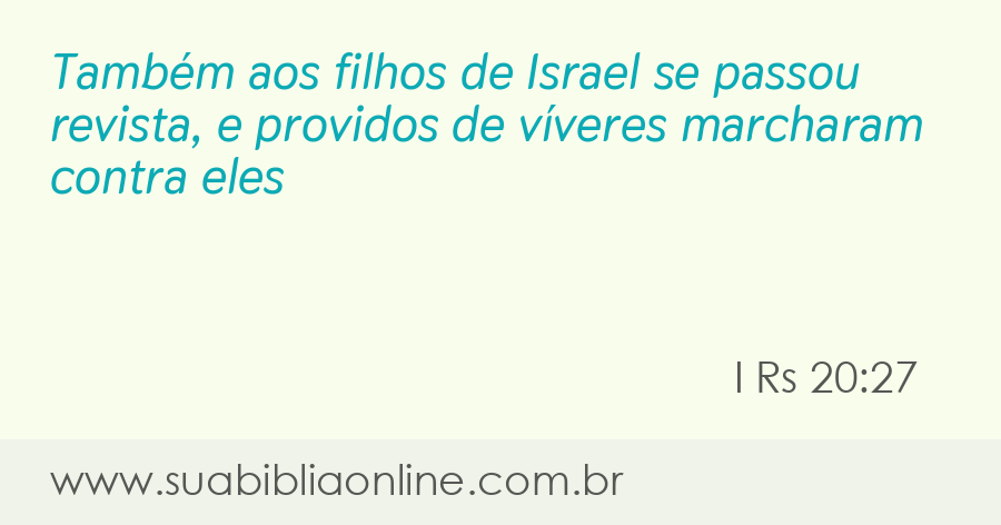 Também os filhos de Israel foram arregimentados e, providos de víveres, marcharam contra eles. E os filhos de Israel acamparam-se defronte deles, como dois pequenos rebanhos de cabras; mas os sírios enchiam a terra.