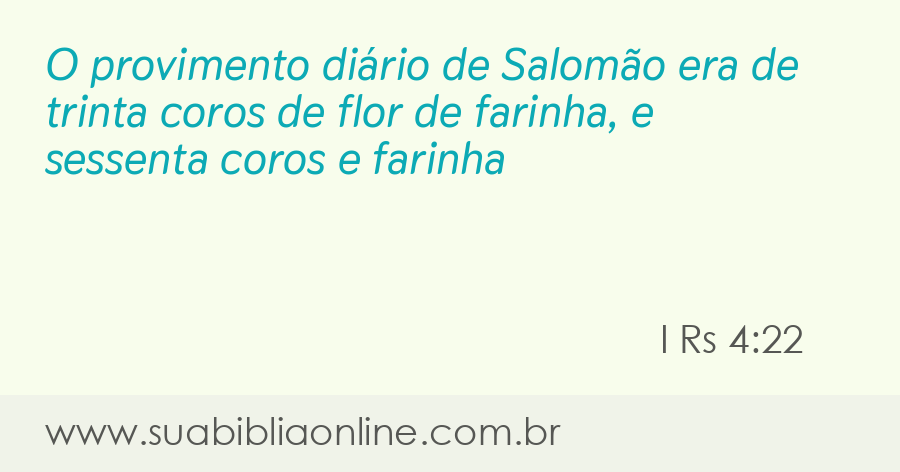 O provimento diário de Salomão era de trinta coros de flor de farinha, e sessenta coros e farinha;