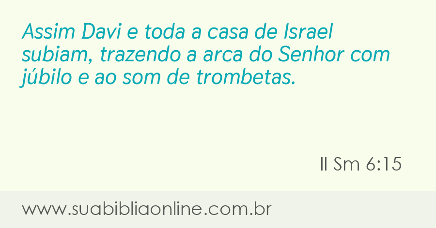 Assim Davi e toda a casa de Israel subiam, trazendo a arca do Senhor com júbilo e ao som de trombetas.