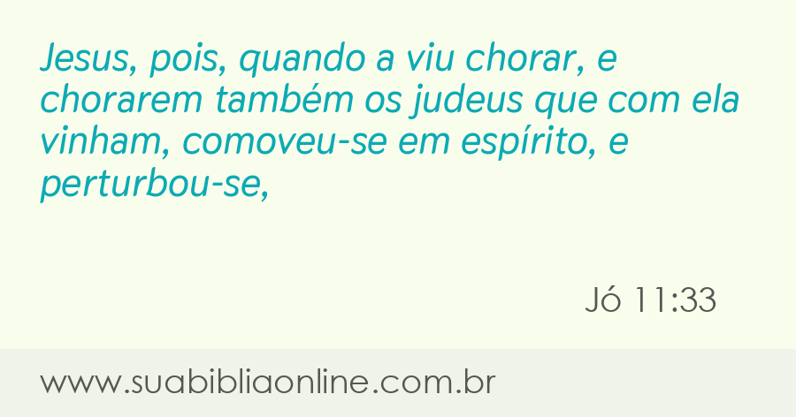Faça sua busca na Bíblia. Sua Bíblia Online.Versão completa da Bíblia em Português com todos os livros, capítulos e versículos bíblicos.Jesus, pois, quando a viu chorar, e chorarem também os judeus que com ela vinham, comoveu-se em espírito, e perturbou-se,