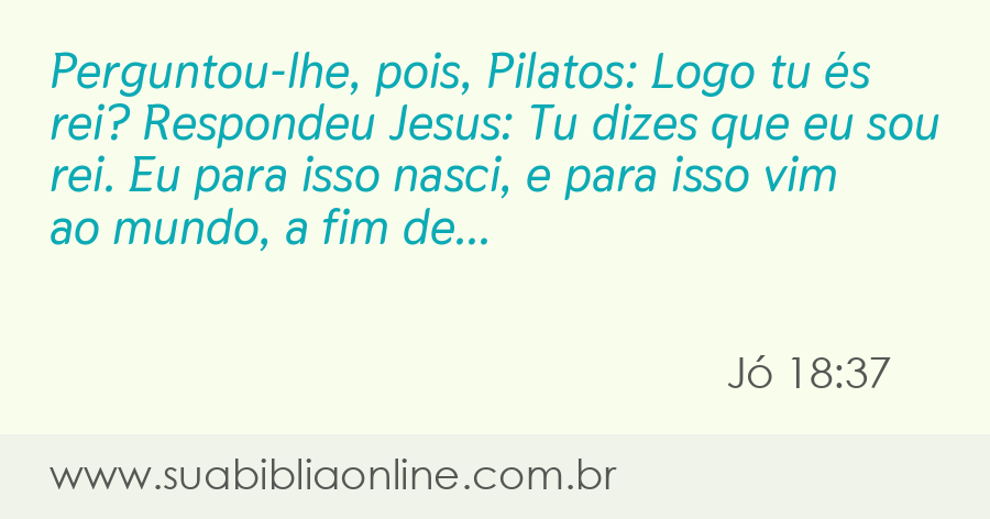Perguntou-lhe, pois, Pilatos: Logo tu és rei? Respondeu Jesus: Tu dizes que eu sou rei. Eu para isso nasci, e para isso vim ao mundo, a fim de dar testemunho da verdade. Todo aquele que é da verdade ouve a minha voz.