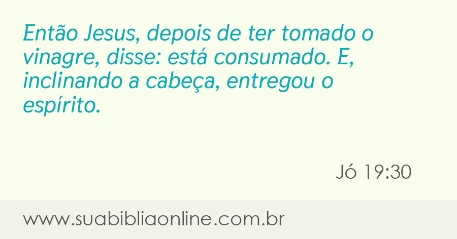 Então Jesus, depois de ter tomado o vinagre, disse: está consumado. E, inclinando a cabeça, entregou o espírito.