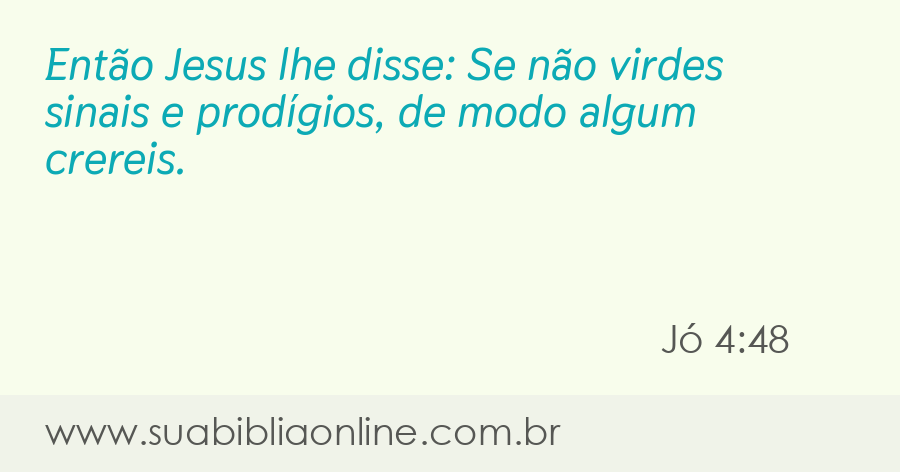 Então Jesus lhe disse: Se não virdes sinais e prodígios, de modo algum crereis.