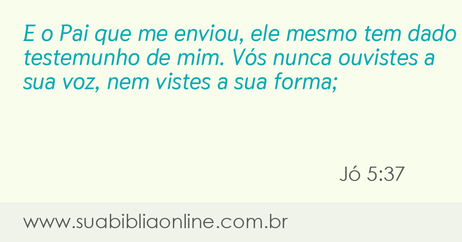 Faça sua busca na Bíblia. Sua Bíblia Online.Versão completa da Bíblia em Português com todos os livros, capítulos e versículos bíblicos.E o Pai que me enviou, ele mesmo tem dado testemunho de mim. Vós nunca ouvistes a sua voz, nem vistes a sua forma;