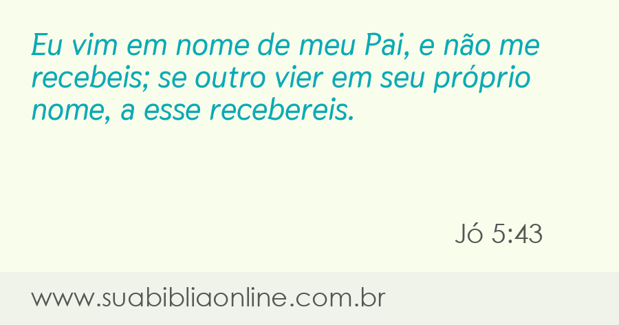 Eu vim em nome de meu Pai, e não me recebeis; se outro vier em seu próprio nome, a esse recebereis.