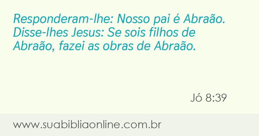 Responderam-lhe: Nosso pai é Abraão. Disse-lhes Jesus: Se sois filhos de Abraão, fazei as obras de Abraão.