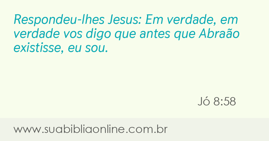 Respondeu-lhes Jesus: Em verdade, em verdade vos digo que antes que Abraão existisse, eu sou.