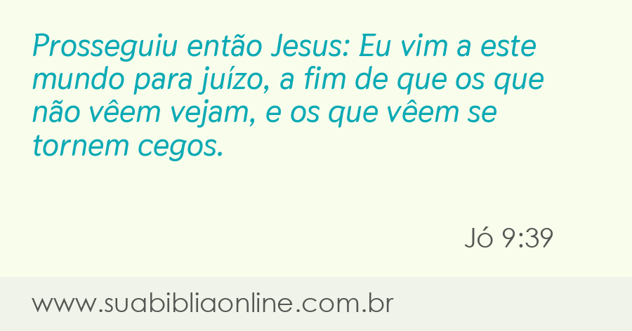 Faça sua busca na Bíblia. Sua Bíblia Online.Versão completa da Bíblia em Português com todos os livros, capítulos e versículos bíblicos.Prosseguiu então Jesus: Eu vim a este mundo para juízo, a fim de que os que não vêem vejam, e os que vêem se tornem cegos.