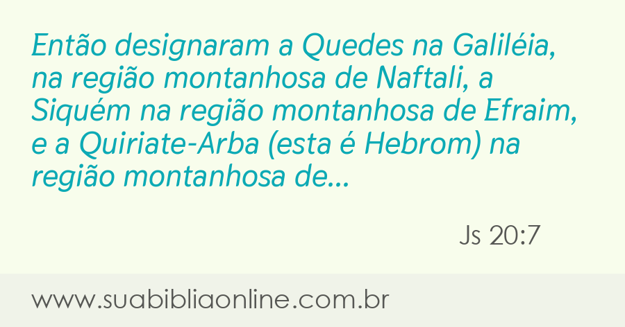 Então designaram a Quedes na Galiléia, na região montanhosa de Naftali, a Siquém na região montanhosa de Efraim, e a Quiriate-Arba (esta é Hebrom) na região montanhosa de Judá.