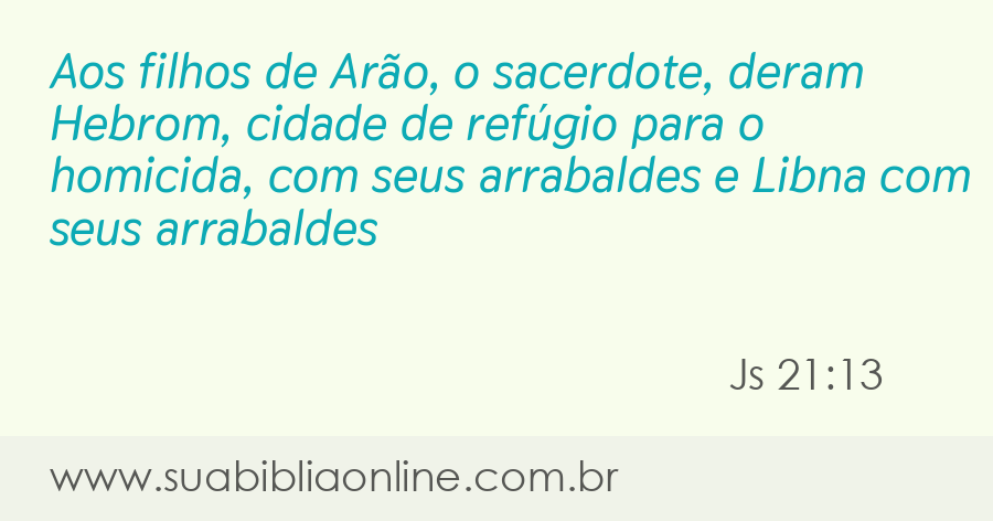 Aos filhos de Arão, o sacerdote, deram Hebrom, cidade de refúgio do homicida, e seus arrabaldes, Libna e seus arrabaldes,