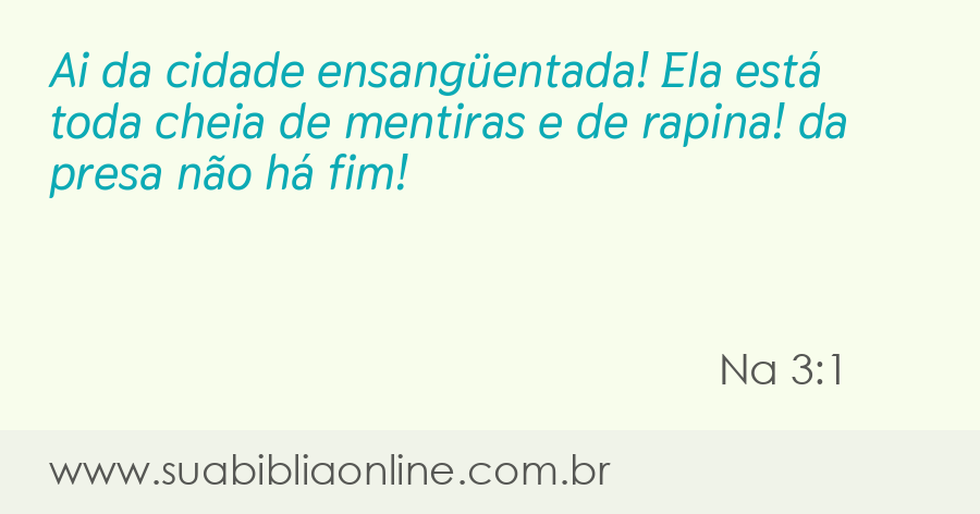 Ai da cidade ensangüentada! Ela está toda cheia de mentiras e de rapina! da presa não há fim!