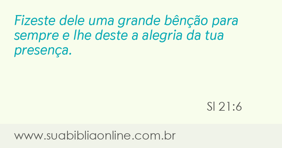 Sim, tu o fazes para sempre abençoado; tu o enches de gozo na tua presença.